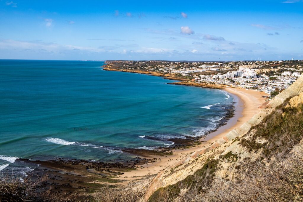 The Alhavre coast stretches from Cape San Vincent to the east to the border with Spain. The water in the ocean in this part of Portugal warms up better than near Lisbon or Porto, because the Gulf Stream does not reach here. The further east you go, the warmer the water.
