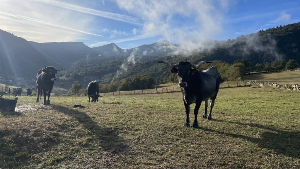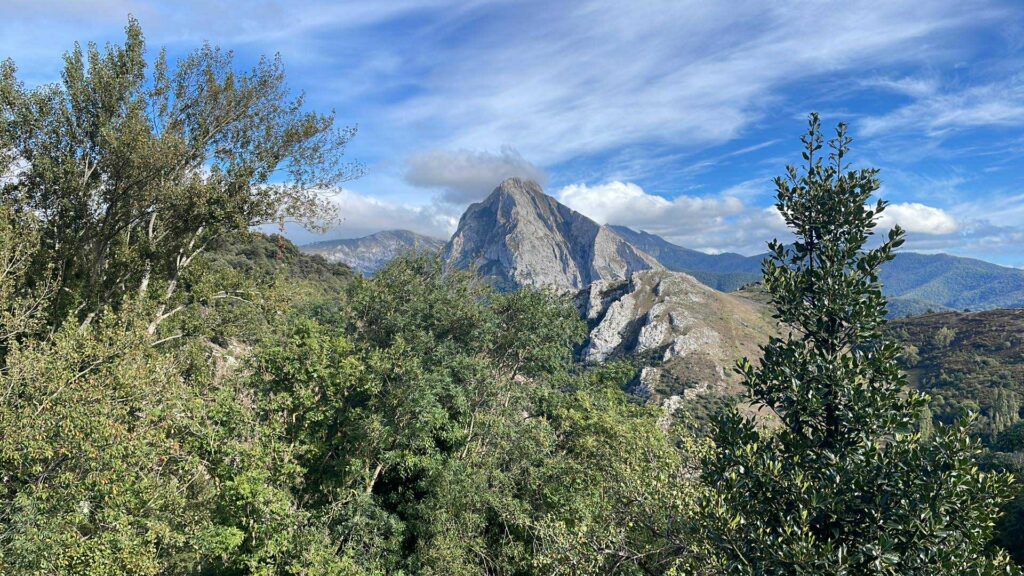 The views at the beginning of the trail are impressive: you can see the main summit of Naranjo de Bulnes in the Picos de Europa mountains. I managed to see all this yesterday, but in the morning it started to rain, and it would rain all day.