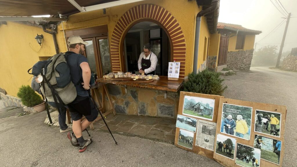 Albergue de Cabañes – a hostel for pilgrims and hikers looking for clean beds, good food, and wonderful views from the terrace. Just an incredibly beautiful place. I booked a bed, but was given a separate room. Delicious communal dinner, getting to know the owner Dario, who treated everyone to wine, a wonderful atmosphere, breakfast in the morning, and there’s even a pool in the yard if you’re traveling in warm weather – just great for such reasonable money (22 euros + food).