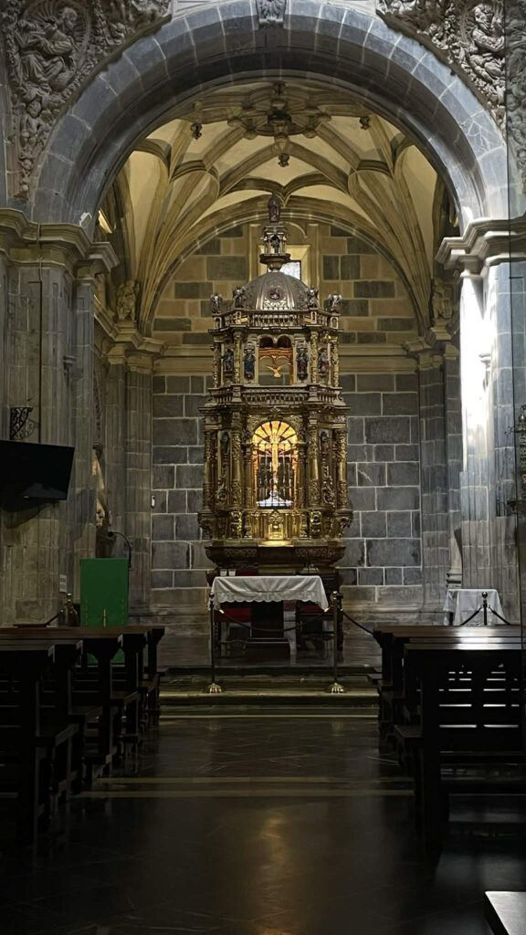 Here you will find the Gate of Forgiveness (Puerta del Perdón) from the 15th century, which opens every year on April 16. That is, whenever April 16 falls on a Sunday, the anniversary of the birth of the monk Santo Toribio, a historical figure known for bringing the Holy Cross (Lignum Crucis) to Liébana. This relic is considered the largest remaining piece of the True Cross.