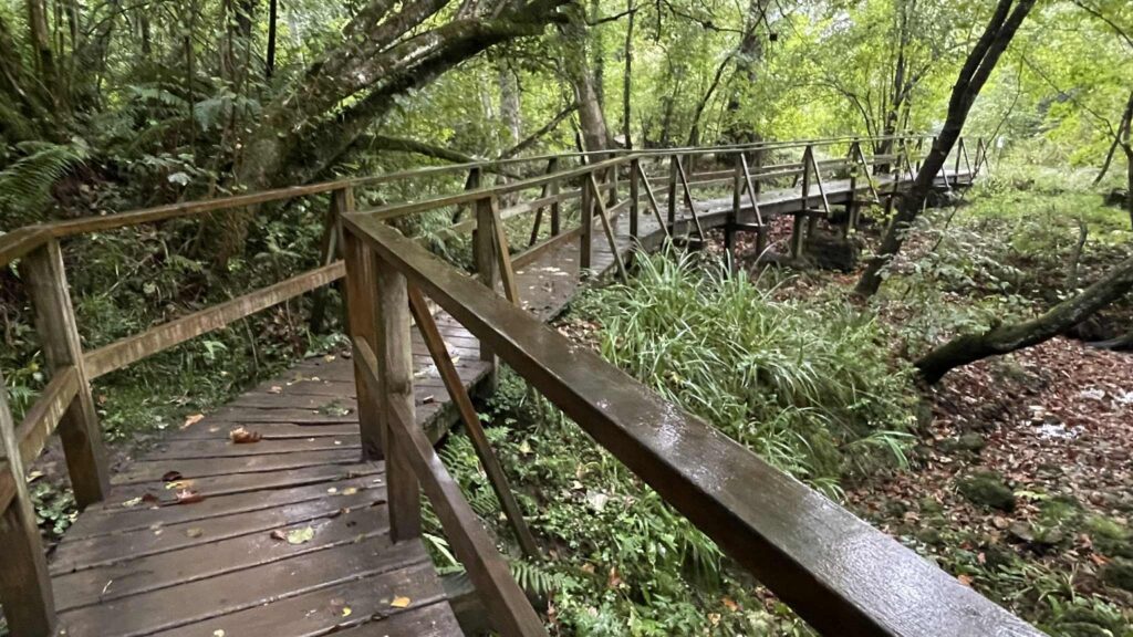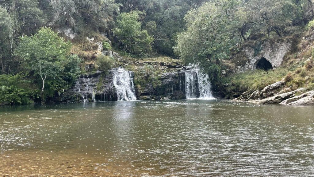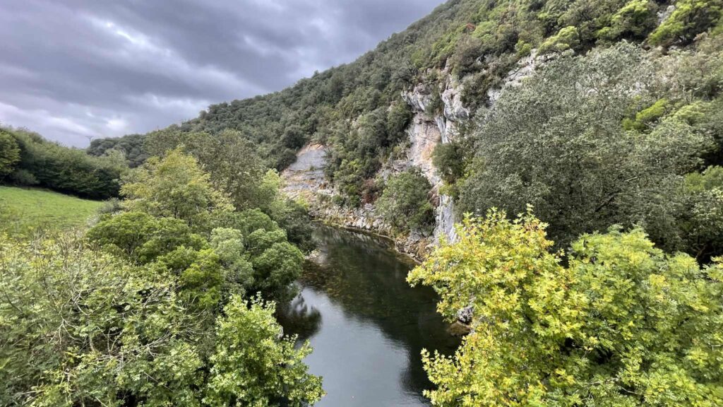 Further on, my Lebaniego route runs along the Nansa river trail. This section is 20 km long and passes through shady riverside forest with wooden walkways. The river trail is longer than the original Camino, but it takes you away from the busy main road and is a much better option. And it’s really very scenic, even in the rain it’s beautiful here.