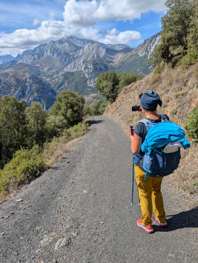 Today’s section of the Camino Lebaniego is the toughest, but the views make up for the fatigue – there are many elevation changes here, but the paths are good. Climbing up and then descending down, the three of us entered the beautiful Liébana Valley, walking through forests, admiring breathtaking rocky formations, and of course, watching the amazing griffon vultures soaring overhead for most of the day.