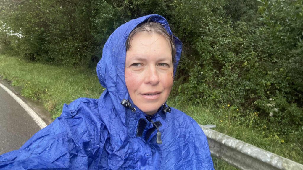 Wearing my poncho raincoat, I headed toward the next village, La Acebosa. Then the official route to the village of Serdio—there’s a bar and café here, which were closed. There’s an alternative route—shorter and flatter, but it runs on asphalt along the road—I don’t like breathing exhaust fumes and I’m not in a hurry, my feet are already wet anyway.