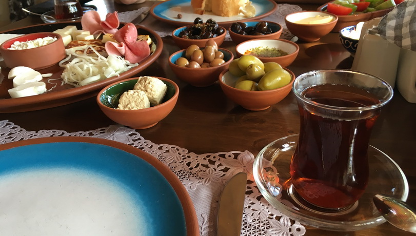 Very tasty cuisine, exquisite service and a quiet pleasant atmosphere. Prices are lower than in many restaurants in Goreme. The room rate ($25 per day per room) included a classic Turkish breakfast with several types of cheeses, olives, homemade jams, Turkish omelets, pastries, vegetables, and fruits. After such a breakfast, we would roll out from behind the table and be full for half a day, returning to dinner.