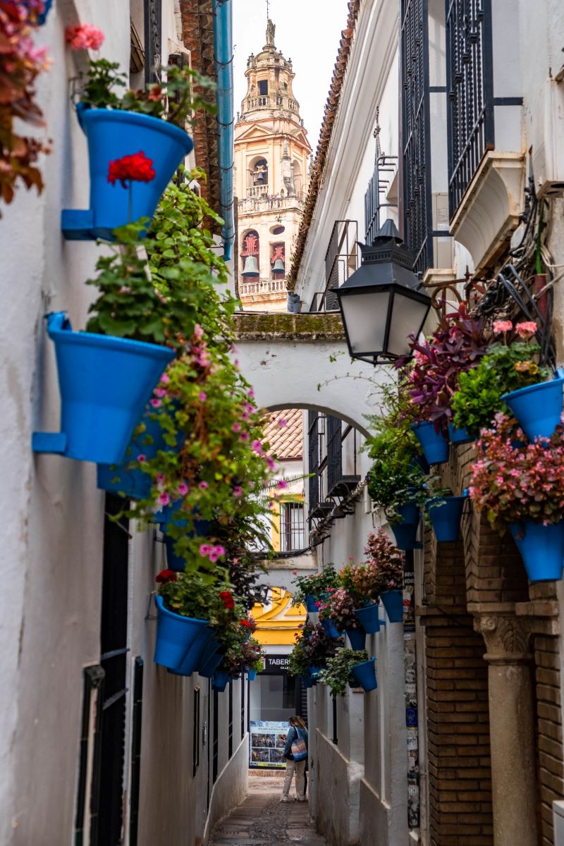 The alley is located very close to Mezquita. Walk to the very end of the alley, where you will find a small square. Turn around here and look back the way you came to see the famous view of the Mezquita Bell Tower, perfectly positioned between the street walls.