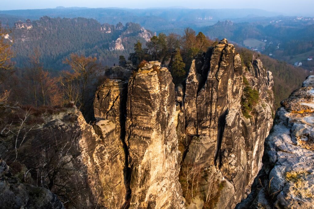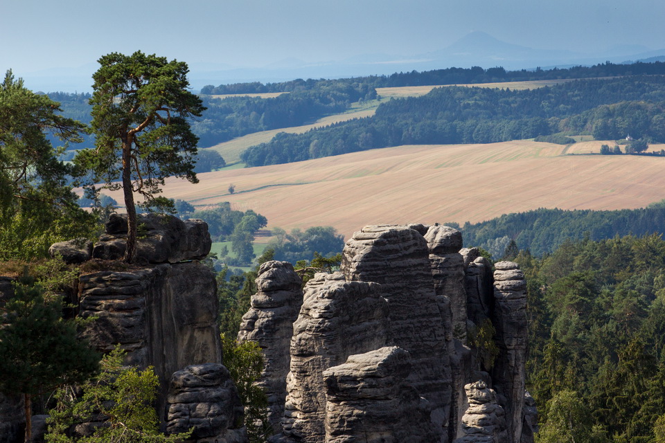 The Czech Switzerland National Park, which is called Saxon Switzerland on the German side. All together, these are the Elbe Sandstone Mountains, which for some reason are compared to Switzerland. But this part of the Czech Republic is so beautiful that it needs no comparison. The sandy cliffs are covered with forests, and in good weather they offer views of the valleys. Over millions of years, the rocks have turned into towers and stone bridges that resemble troll lairs.