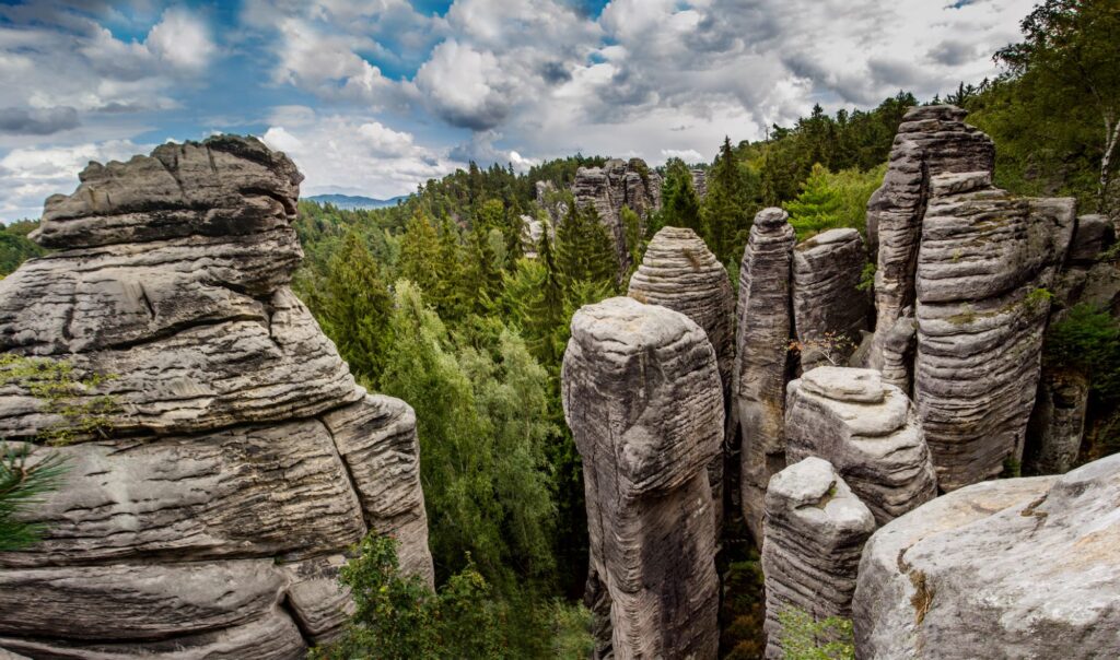 Bohemian Paradise is a nature reserve in the north of the Czech Republic with a bizarre landscape formed by sandstone cliffs. The Prachovské rocks, the rock town of Hrubá Skála, the Bethlehem rocks, and the Vranovská ridge are all unique natural formations filled with stone giants and labyrinths formed by wind, water, and precipitation. For millions of years, nature has been carving magnificent stone statues, creating a fantastic spectacle that makes you feel like the world is subject to time.