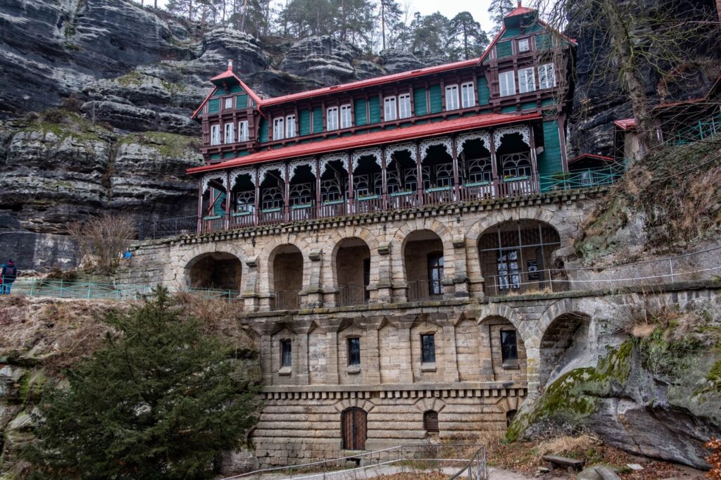 The main places to see are the Pravčická Brána, the largest sandstone arch in Europe (16 meters high). Next to it is the Falcon’s Nest castle (actually a restaurant that does not work in winter).