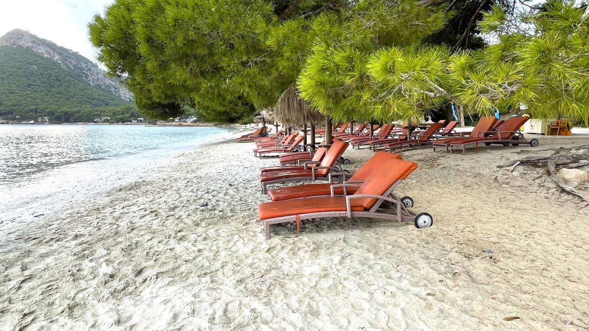 On Mallorca’s north coast you’ll find Formentor Beach. It’s very scenic—a 1.5 km stretch of sand, shaded by pines, perfect for hot days. The sea is shallow and very clear—great for families with kids, even toddlers. Cafés and restaurants by the beach are ideal for lunch, and you can rent sunbeds and umbrellas.