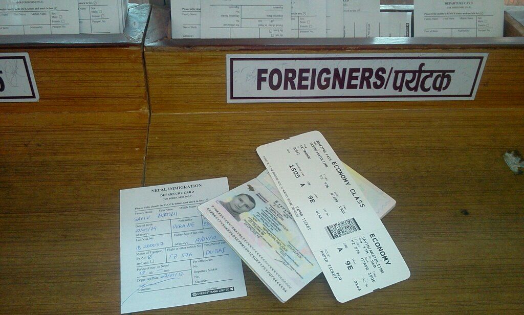 - printed return flight tickets from Nepal;