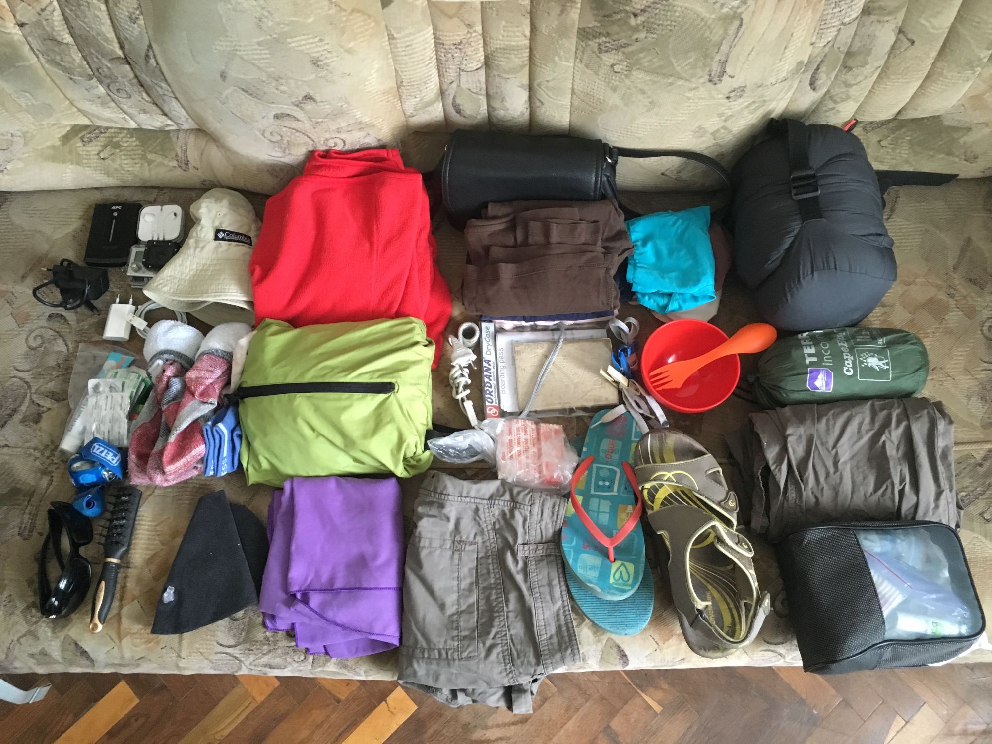 This is the basis, and then everyone adds their own set of things if they want to carry them in a backpack. There is no need for unnecessary things – the lodgings provide hand laundry, often with washing machines and dryers (from 3 euros each) for extra money.