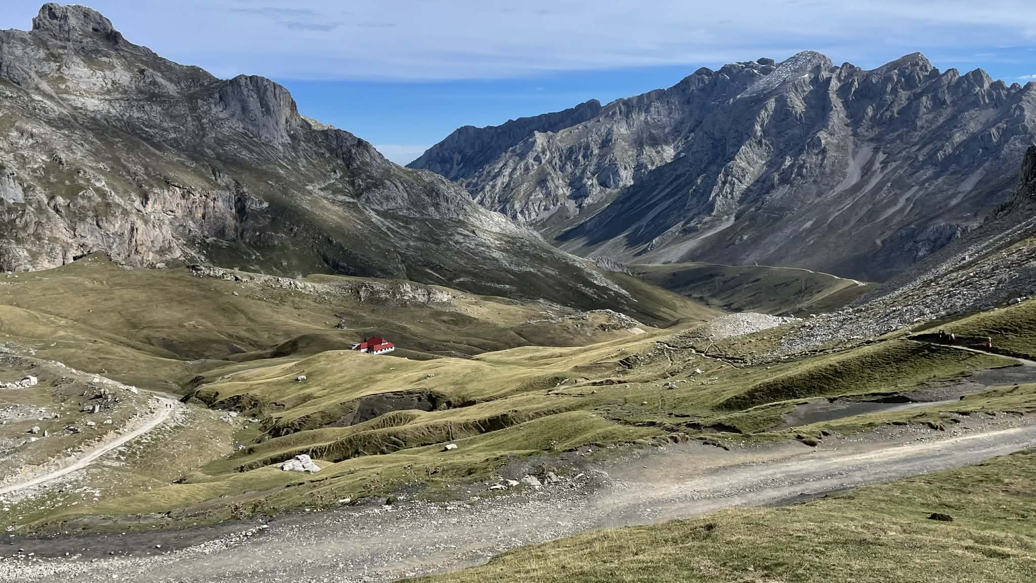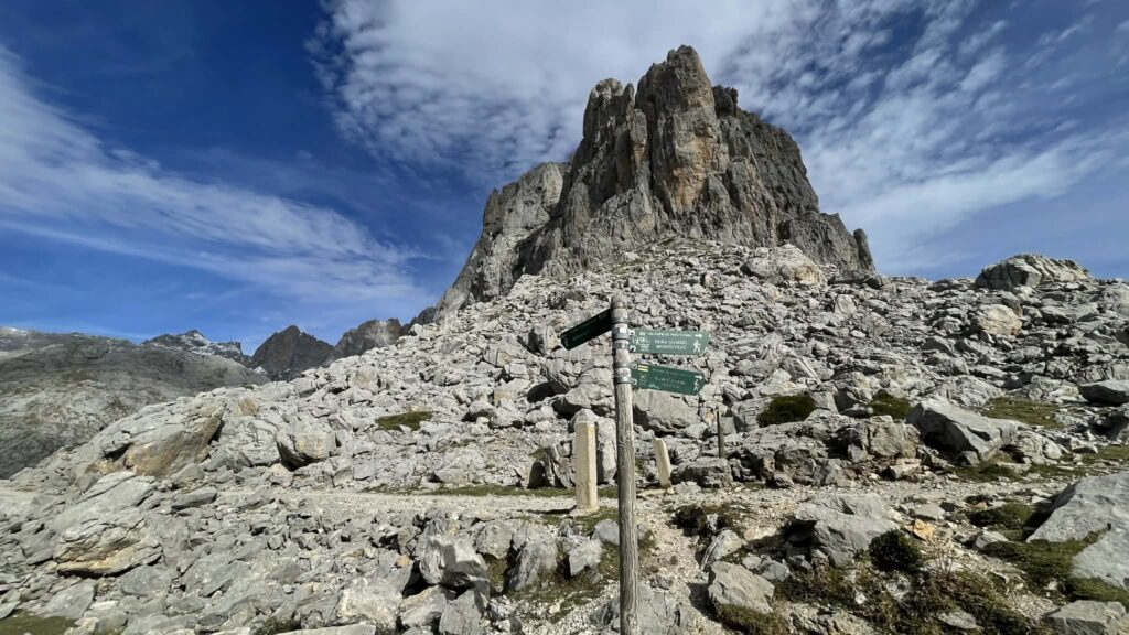 With a view of the bare limestone mountains, follow the well-laid trail north to Horcada de Covarrobles pass (1933 m). At the pass, there’s a signed junction. The left trail goes to Horcaos Rojos (PR-PNPE-23), while the right leads to Refugio Áliva. If you need Sotres or want to do a circular route down to Espinama, go toward Refugio Áliva.