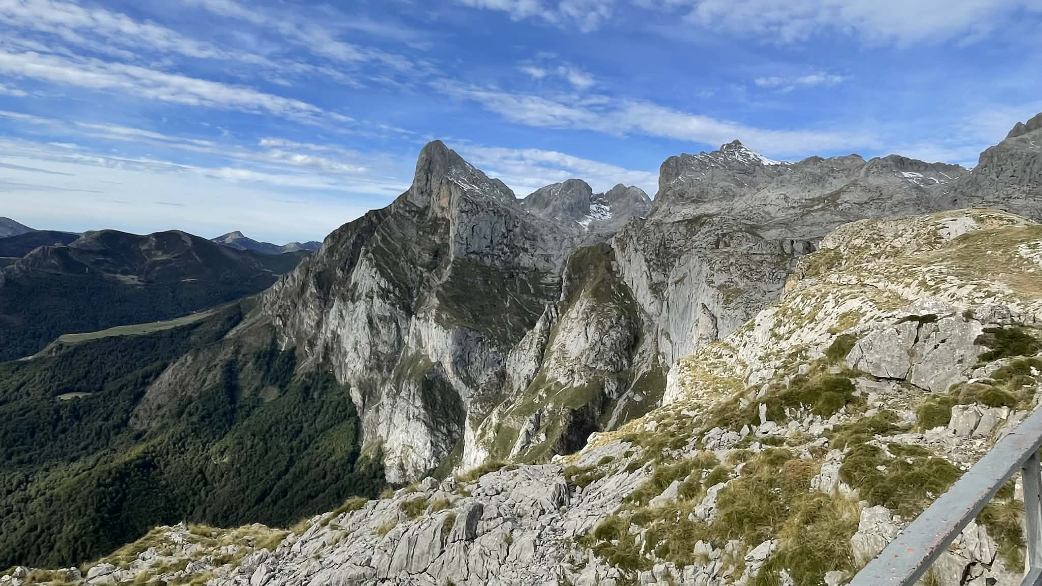 The “Mirador del Cable” viewpoint is located right at the mountain station. From this metal balcony-platform, you get a panoramic view of the Camaleño Valley, the main summits of the Picos de Europa Central Massif (Urrieles), and the Cantabrian Mountains.