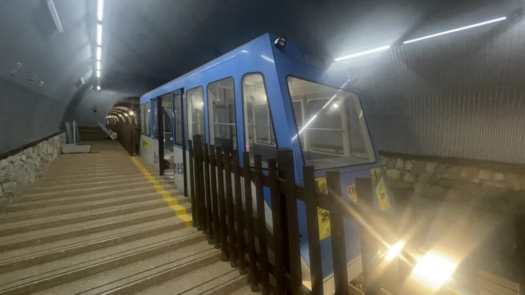 If you’ve used cable cars in Lisbon or other cities, this cable car is a mountain lift climbing hundreds of meters up, up, up. The views and speed reminded me of the cable car up Demerdzhi mountain in Crimea, or the lift in Montserrat near Barcelona. The cabin moves very fast—just 4 minutes for the ride. At the end, you get the feeling the cable car is about to crash into the rock wall. The mountain seems to come at you—what a wild sensation!