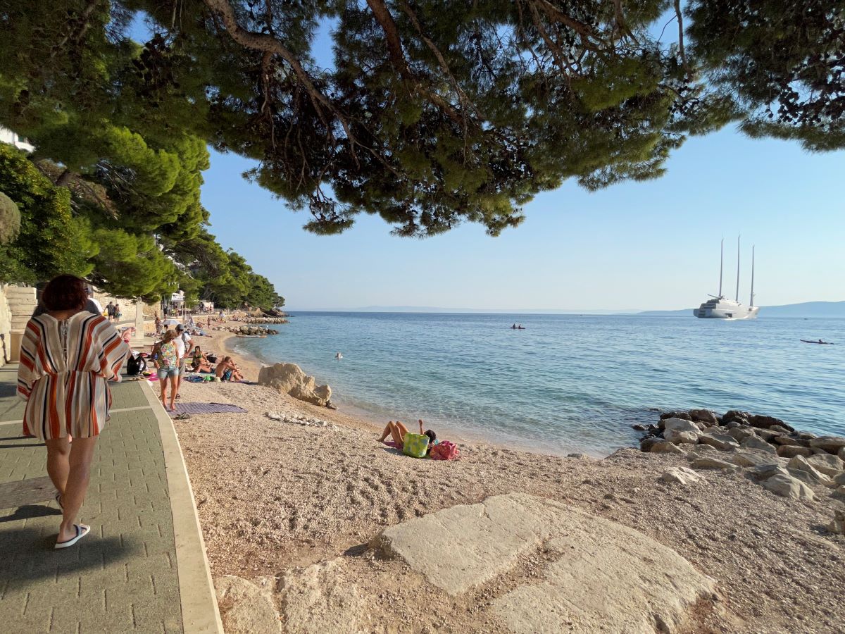 There is artificially filled sand in rare cases – for example, on the city beach of Bačvice in Split. Or in the town of Omiš, where the Cetinje River flows into the sea, which deposited a layer of sand, creating a large sandy beach. That is, the choice of sandy beaches is small.