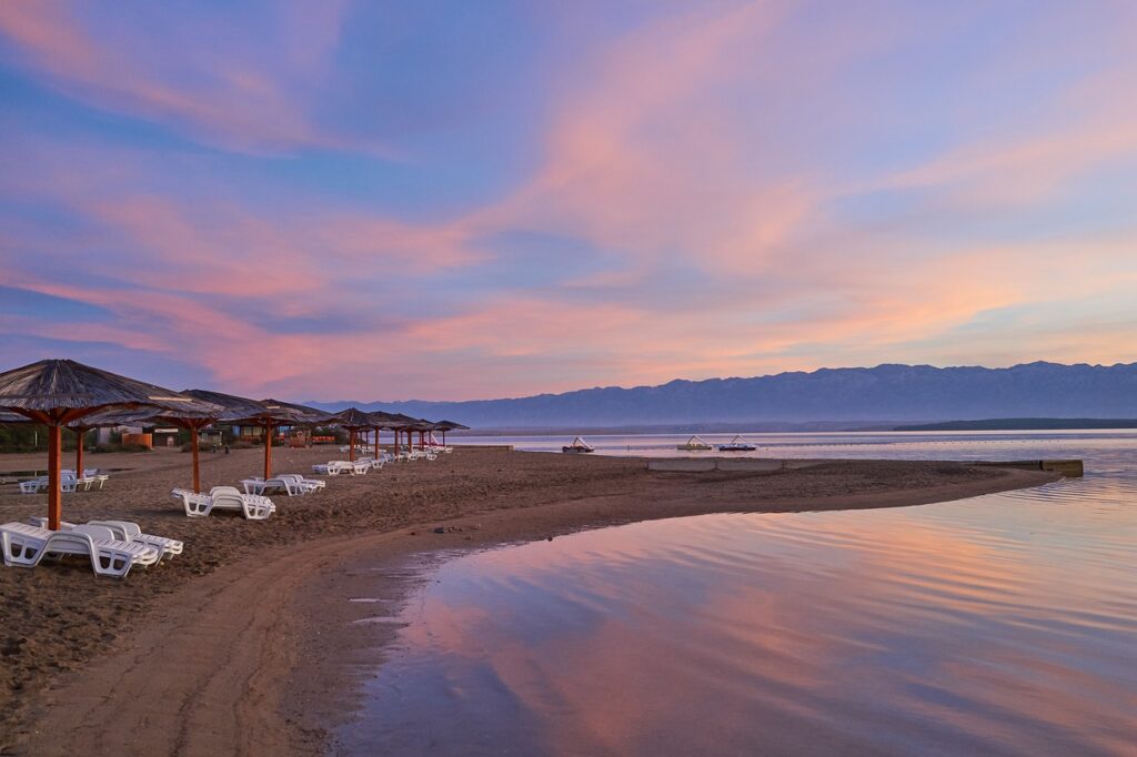 Kraljičina plaža is one of the 100 best beaches in the world. It is especially suitable for families with small children. The sea is shallow for a very long time and therefore also warm. There are also water attractions and refreshments. Adults will also be delighted with the beautiful view of the Velebit mountain range.