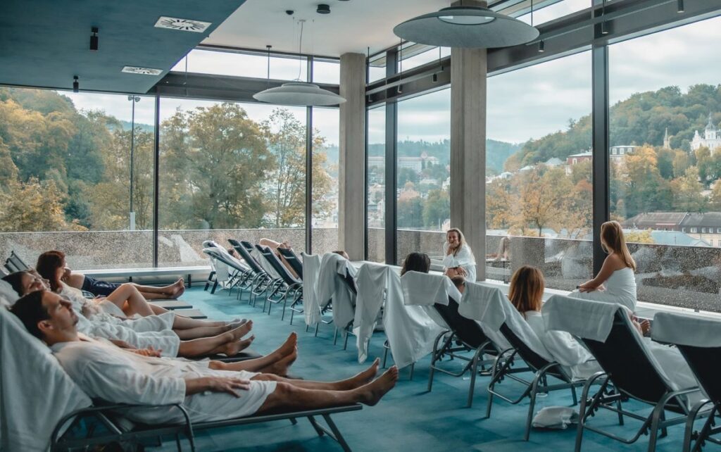 Beautiful views of the city, heated pools and 8 saunas – all this in the five-story Saunia Thermal Center, located in the center of the world-famous Karlovy Vary resort.