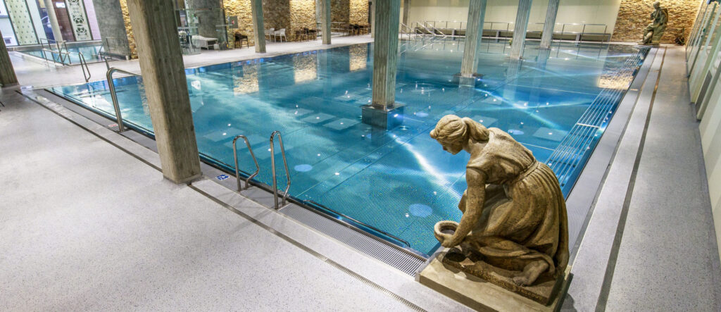A unique pool complex in the center of Karlovy Vary with the largest pool (110,000 liters) with 100% natural thermal water at 38 °C. This allows visitors to take healing baths throughout the year, regardless of whether it is hot or snowy. The spring water is changed regularly every day.