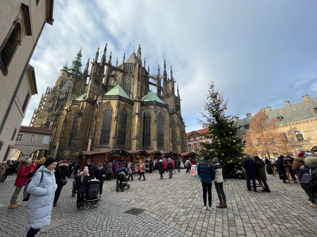 All tourists start their Prague itineraries from Prague Castle, the former residence of Czech kings and the largest castle complex in Europe. It is open daily from 6:00 to 22:00. You can walk around the courtyards of Prague Castle for free. If you want to go inside for a guided tour, it is better to buy a season ticket – 250 CZK-€9.7. The price includes all major attractions: The old royal palace, the Basilica of St. John the Baptist, and the Church of St. George. Giri, St. Vitus Cathedral, Zlatna Street. At Christmas, Hrad decorates a Christmas tree and organizes a festive fair.