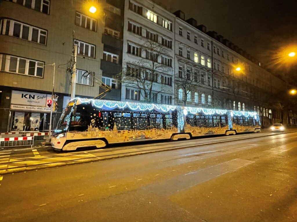 If you’re really cold, take the Prague Christmas tram, which runs through the city every year. In fact, it is an ordinary tram decorated with Christmas garlands and angels. You can buy a ticket with a card inside – get on and ride around the city for half an hour (a half-hour ticket costs 30 CZK, an hour and a half ticket costs 40 CZK).