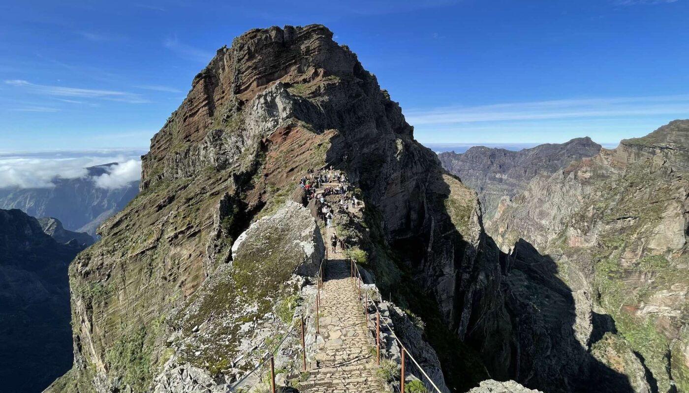 Маршрут від Піку-ду-Арейру до Піку-Руйво, мабуть, найвідоміший і найпопулярніший гірський похід на Мадейрі. І недаремно. Ця стежка доступна з Фуншалу, і ви можете по суті під’їхати до вершини Піку-ду-Арейру лише на світанок чи захід сонця, що більшість людей роблять щодня.