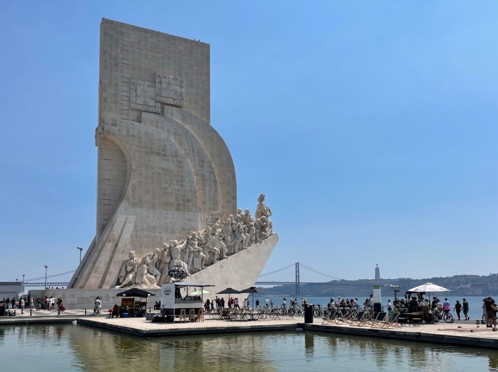 Цей величезний монумент має форму корабля з фігурами 33 людей на борту. Головна фігура – принц Генріх Мореплавць, інші колосальні скульптури належать відомим особистостям, пов’язаним з португальською епохою географічних відкриттів. Це дослідники – поет Луїс де Камойнс і художник Нуну Гонсалвеш та інші. Всередині знаходяться тимчасові виставки та ліфт, який підіймає відвідувачів на терасу на вершині, звідки відкривається захоплюючий вид на сусідні пам’ятники. Зовні, на землі можна побачити величезний компас із картою світу, яка простежує маршрути морських героїв Португалії.